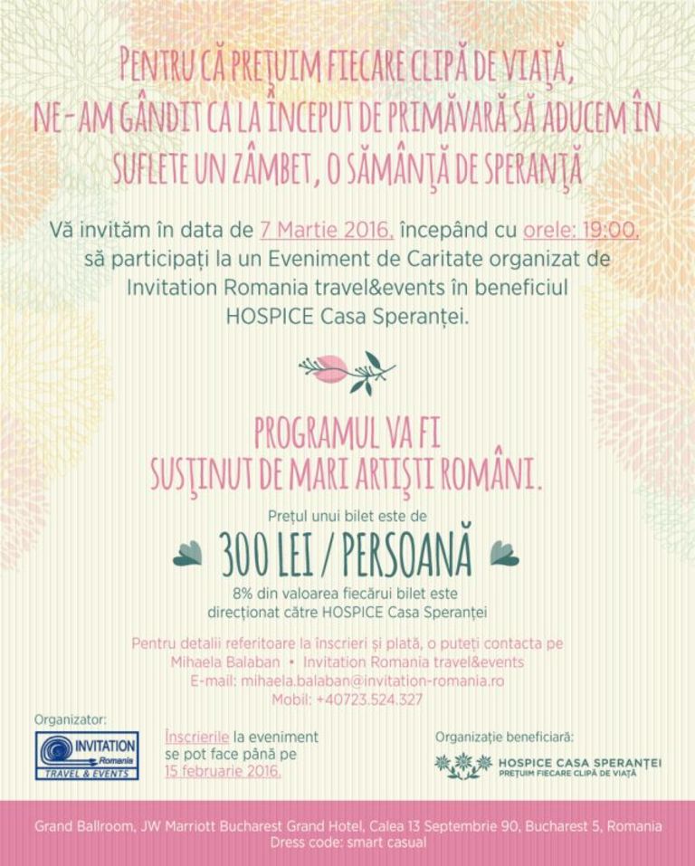 Invitation Romania travel & events invites you on March the 7th, 2016, beginning with 19:00 to take part in a charity event organized for the benefit…