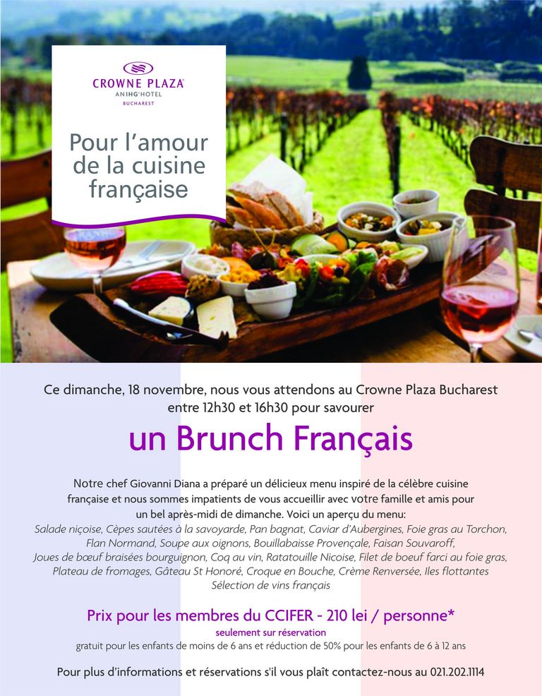 Pour l'amour de la cuisine française! Ce dimanche, 18 novembre, nous vous attendons au Crowne Plaza Bucharest entre 12h30 et 16h30 pour savourer Un…