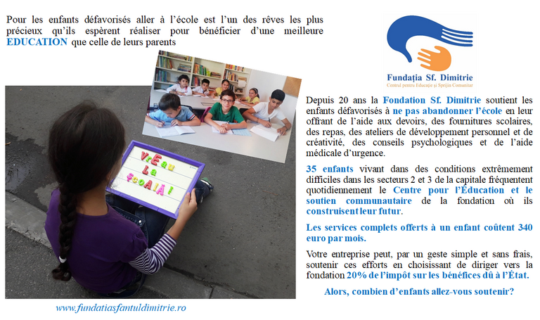Depuis 20 ans la FONDATION SF. DIMITRIE soutient l’éducation des enfants défavorisés de Bucarest en luttant contre l’abandon scolaire par une approche…