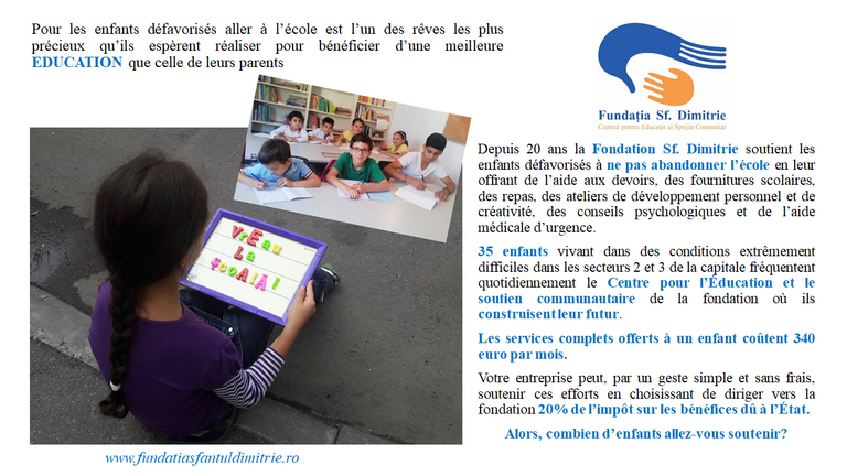 Depuis 20 ans la FONDATION SF. DIMITRIE soutient l’éducation des enfants défavorisés de Bucarest en luttant contre l’abandon scolaire par une approche…