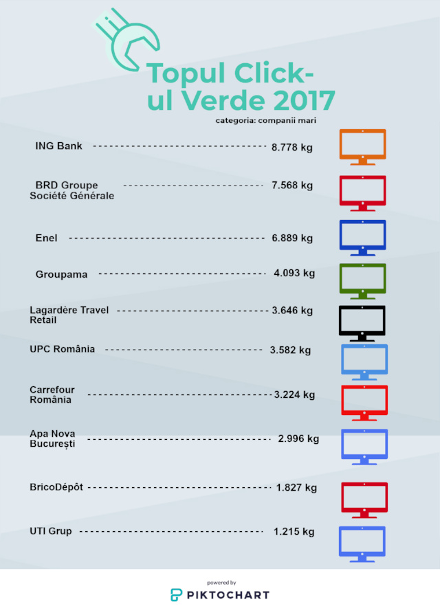 Ce classement annuel distingue les sociétés roumaines les plus responsables du point de vue de la gestion de leurs Déchets d’Equipements Electriques et Electroniques (DEEE), qui ont respecté leur engagement en faveur de l’environnement et ont remis le plus d‘équipements informatiques à AFF, opérateur autorisé pour la gestion des DEEE depuis 2009.