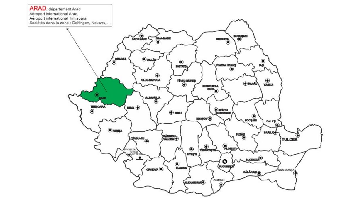 Villes: Arad, Pecica, Santana, Lipova, Ineu, Chisineu-Cris, Nadlac, Curtici, Pancota, Sebis.