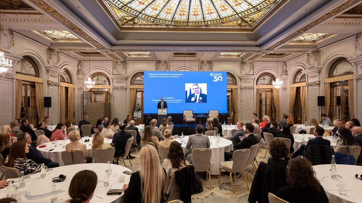 La Chambre de Commerce, d’Industrie et d’Agriculture Française en Roumanie (CCIFER) a désigné sa nouvelle équipe de direction lors de l’Assemblée Générale annuelle des membres, tenue le 16 mars et ayant réuni environ 200 représentants du milieu d’affaires franco-roumain. Avec 600 membres actifs cumulant un chiffre d’affaires de plus de 47 milliards d’euros, la CCIFER célèbre 30 ans de présence et de représentation en Roumanie et se fixe un plan de développement pour les 30 prochaines années.