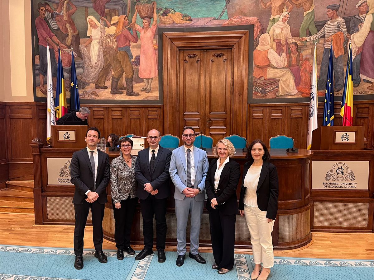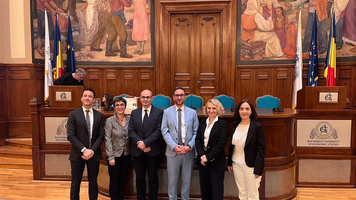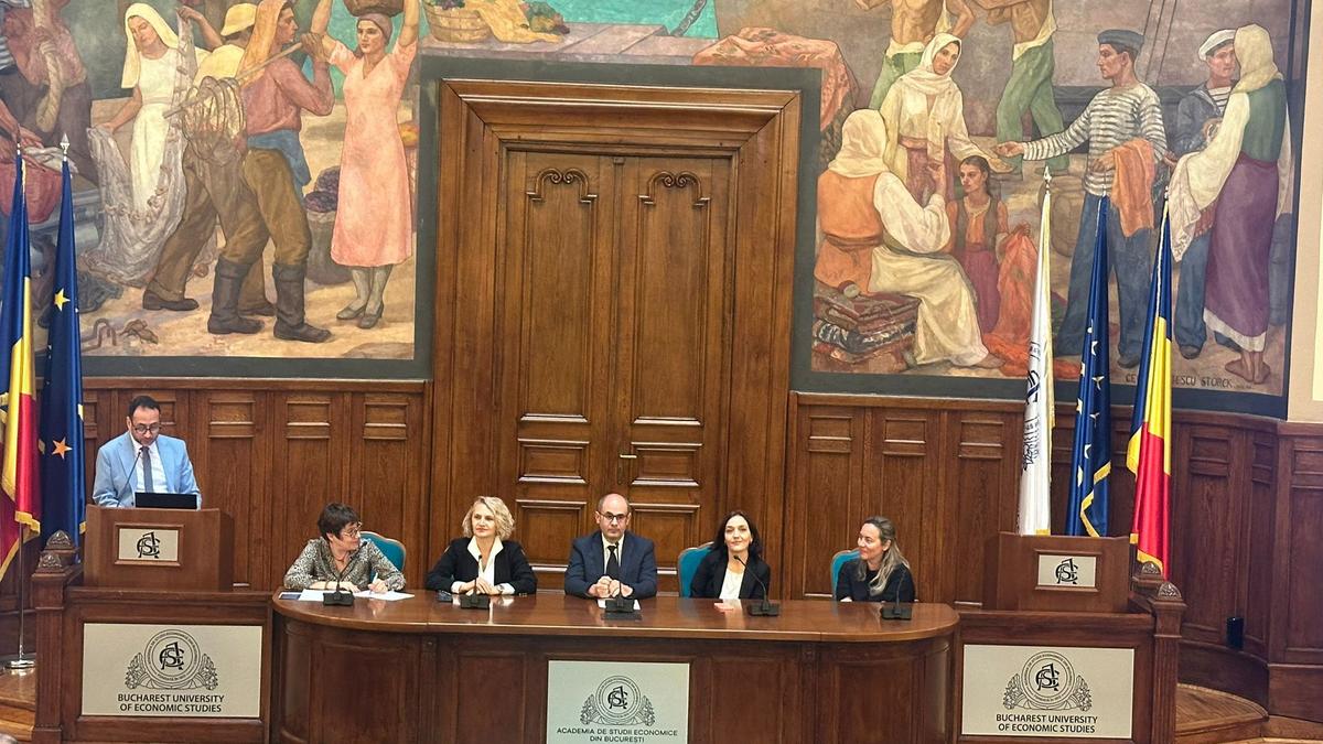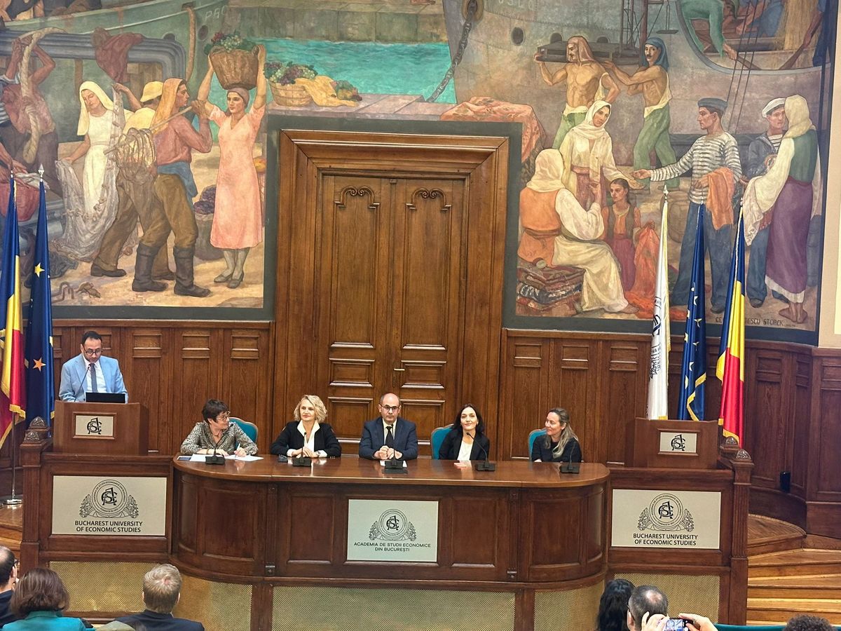 La cérémonie d’ouverture a réuni des officiels et des représentants du monde de l’éducation, de la diplomatie et du secteur privé : Dorel Paraschiv, Vice-recteur de l’ASE, Son Excellence Nicolas Warnery, Ambassadeur de France en Roumanie, Laure Castin, Directrice régionale de l’AUF, ainsi que Flavia Popa, membre du Conseil d’administration de la CCIFER et Secrétaire Générale de BRD Groupe Société Générale.