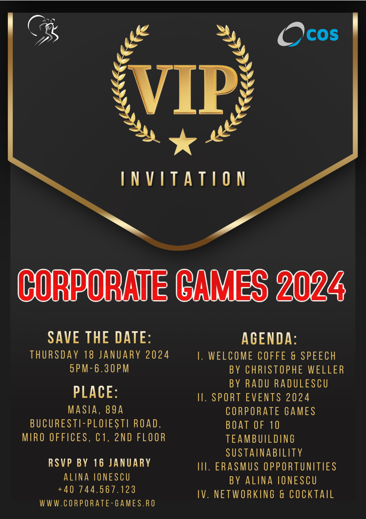 Please RSVP by 16th January 2024 to victoria.weller(@)cos.ro We look forward to your presence at the Corporate Games Conference 2024 in partnership with COS.