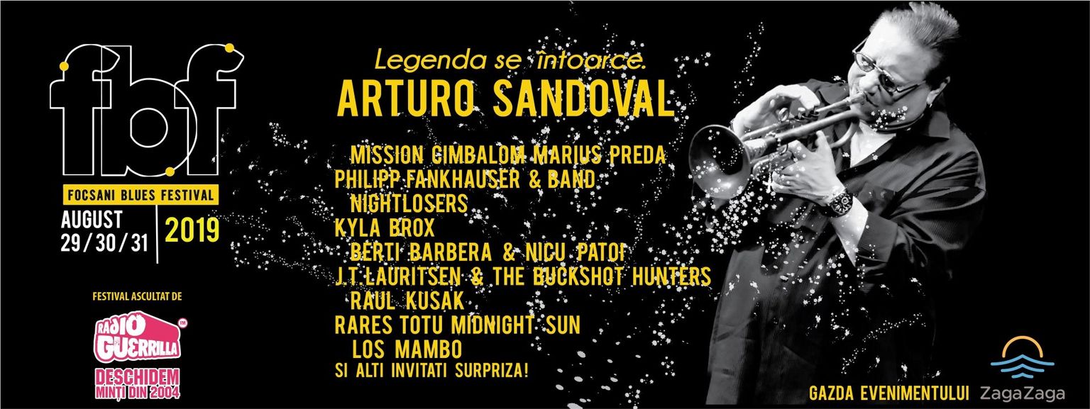 Le plus grand Festival International de Blues de Roumanie, Focșani Blues Festival (FBF), invite cette année les meilleurs artistes internationaux du moment et le plus représentatif: le célèbre, trompetiste, ARTURO SANDOVAL, gagnant de 10 prix GRAMMY, six prix BILLBOARD, un prix EMMY et ayant la plus haute distinction accordé par le Président American Barack Obama, la MEDAILLE DE LA LIBERTE.