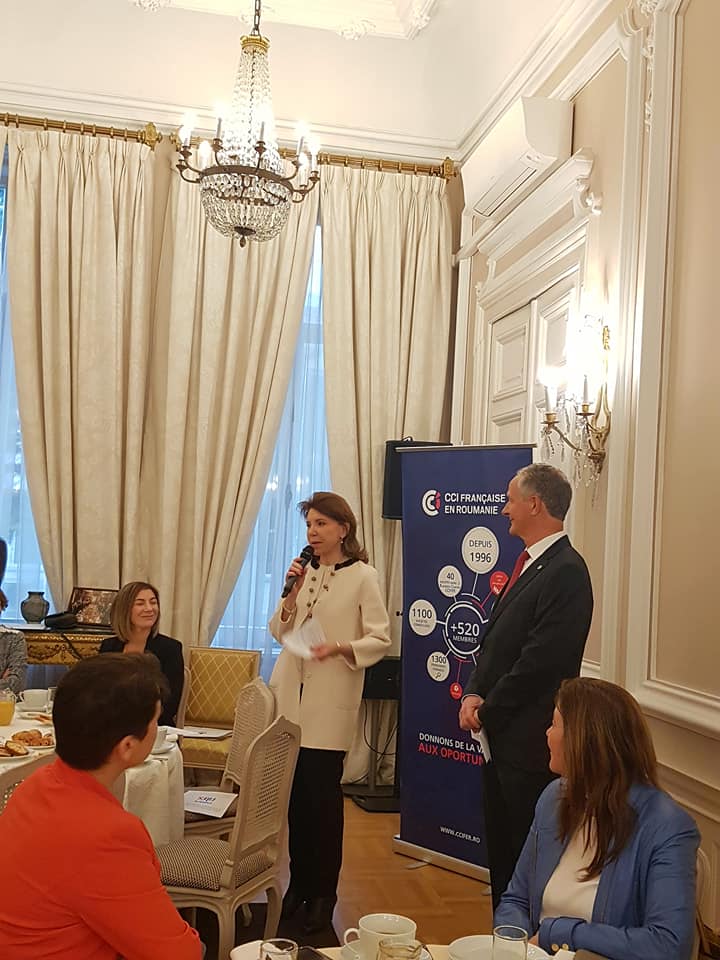 Le petit-déjeuner a été ouvert par SE l’Ambassadrice de France en Roumanie, Michèle Ramis, et François Coste, Président de la CCIFER. Ensuite, l’atelier animé par Valérie Ciolos-Villemin - Comment construire un power speech en quelques minutes - et comment improviser tout en restant pro, a lancé le débat.