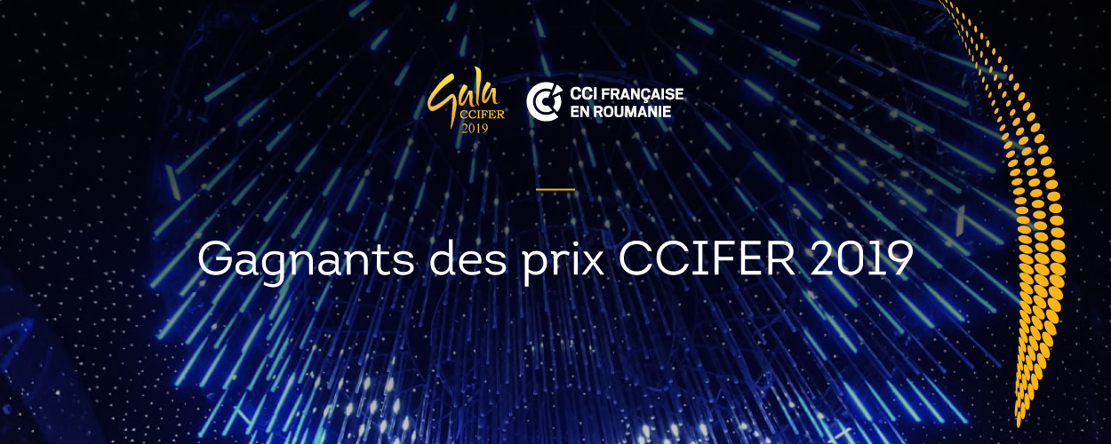 Le 20 septembre 2019, une nouvelle édition du Gala CCIFER a eu lieu, au cours de laquelle ont été remis les Prix CCIFER, qui ont atteint la 13e édition. Le Gala CCIFER est un événement exceptionnel au cours duquel nous célébrons chaque année les réalisations des membres et partenaires de la Chambre de Commerce, d'Industrie et d'Agriculture Française en Roumanie, ainsi que la force du partenariat économique entre la Roumanie et la France. L'événement s'est déroulé en présence de Son Excellence Michèle Ramis, ambassadrice de France en Roumanie, de Radu Florescu, coordinateur de la part de la Chambre de Commerce Américaine de la Coaliția pentru Dezvoltarea Româniaie et de Dacian Cioloș, Président du Groupe Politique Européen Renew Europe.