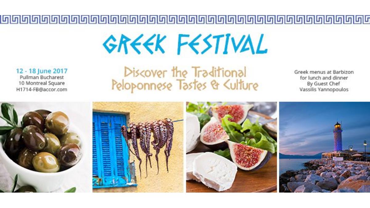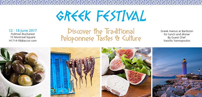 PULLMAN Bucarest a le grand plaisir d’organiser un festival grecque dans l’hôtel dans la période 12 – 18 juin 2017. Le festival se déroulera pendant cette semaine avec une série d’événements avec boisson et nourriture du Péloponnèse, de la musique et l’atmosphère pleine de vie de la Grèce.