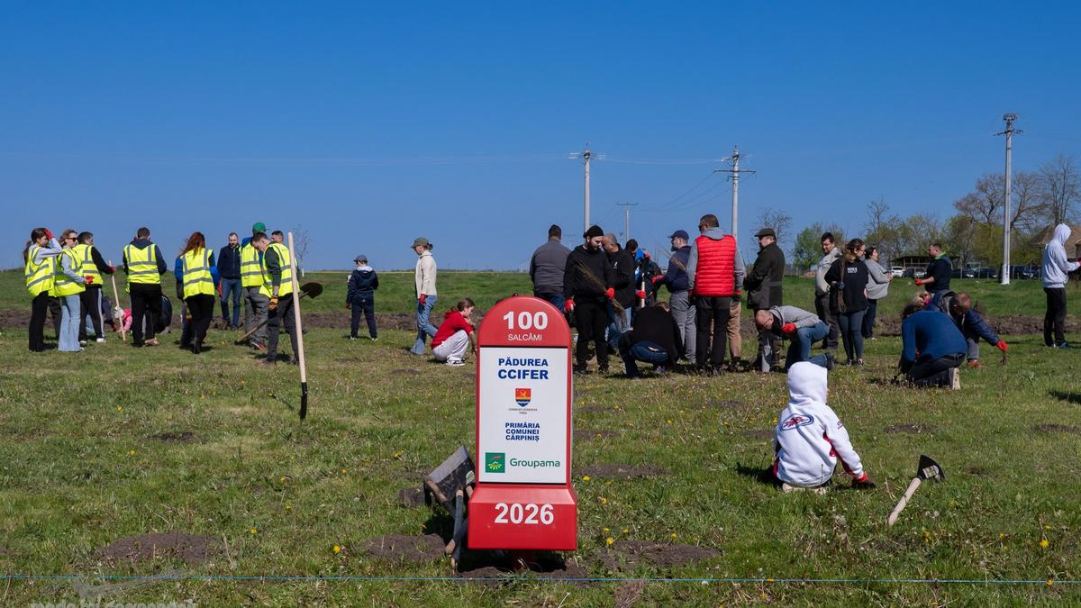 CCIFER, en partenariat avec le Conseil départemental de Timiș, la mairie de la commune de Cărpiniș et l’Association « Se Poate », ainsi que 350 bénévoles, se sont mobilisés à Iecea Mică, commune de Cărpiniș, dans le épartement de Timiș, pour planter 2 130 jeunes plants d’acacia dans le cadre de la deuxième action du projet « Plantons la Forêt CCIFER ».
