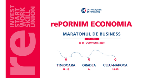 În perioada 12 – 16 octombrie 2020, evenimentele din cadrul Maratonului de business regional „rePORNIM Economia”, organizat în format digital de Camera de Comerț, Industrie și Agricultură Franceză în România, s-au concentrat asupra oportunităților din principalele centre economice în vestul României: Timișoara, Oradea și Cluj-Napoca.