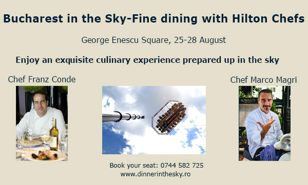 The concept of “Dinner in the Sky” returns to Bucharest for the second edition. Join our Hilton Chefs: Franz Conde – Executive Chef of Athénée Palace Hilton Bucharest and Marco Magri – Italian Chef of Roberto’s Bucharest, and get ready to be delighted by delicious gourmet dishes, wonderfully paired with exquisite wines chosen by sommelier Sergiu Nedelea and fine music by Alexandra Violin and Dorina Vasilashko. All these while admiring the views of the city from 50 m up in the air. Get ready to be amazed and book your seat here! (http://dinnerinthesky.ro/rezervari-evenimente/)