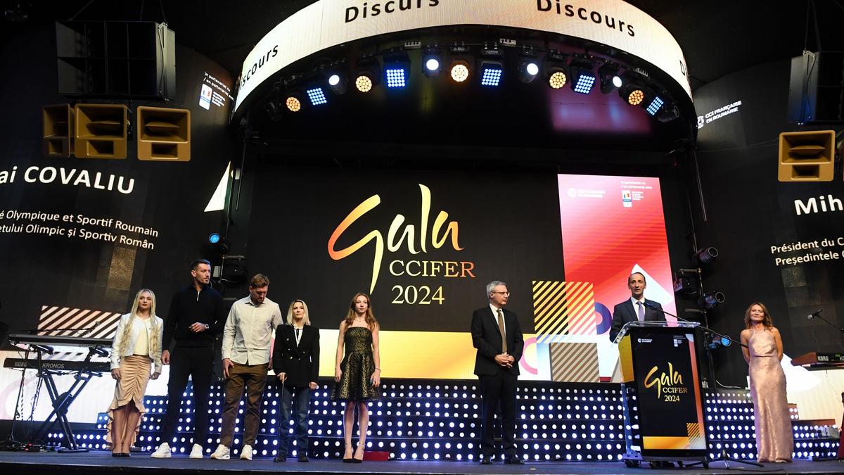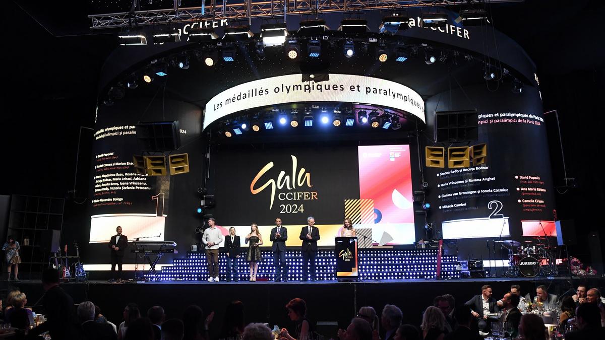 Les champions olympiques Ana Maria Bărbosu – BRONZE (gymnastique, sol), Camelia Ciripan – BRONZE (para tennis de table, simple féminin), Marian Enache – OR (aviron, deux de couple masculin) et Sabrina Voinea – 4ème place (gymnastique, sol) ont été récompensés sur scène, sous les applaudissements de l'audience, par Nicolas Warnery, ambassadeur de France en Roumanie, Adriana Record, directrice exécutive de la CCIFER, et Veronica Dogaru, directrice des communications d'entreprise et RSE chez Orange Roumanie, partenaire de connectivité du Gala.