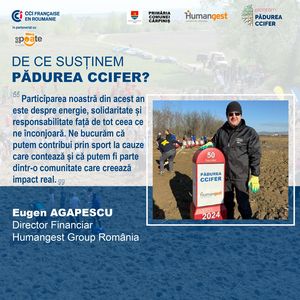 Aujourd’hui, avec la « La Forêt CCIFER », nous choisissons une fois encore de traduire la technologie en action et l’innovation en soin pour la nature. Nous plantons non seulement des arbres, mais aussi de la confiance, de l’équilibre et de la continuité - contribuant ensemble à un environnement plus propre et à une Roumanie plus verte.