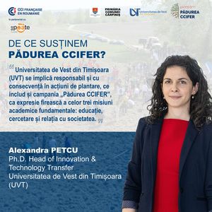 L’Université Ouest de Timișoara (UVT) s’engage de manière responsable et constante dans des actions de plantation, dont la campagne « Forêt CCIFER », qui s'inscrit naturellement dans le cadre de ses trois missions académiques fondamentales : l'éducation, la recherche et les relations avec la société.