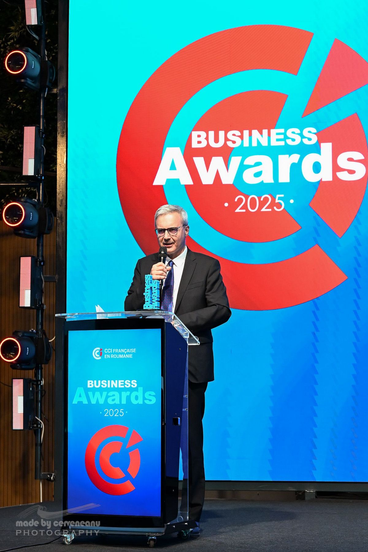 ✨ La cérémonie de remise des trophées s’est déroulée en présence de S.E. Nicolas WARNERY, Ambassadeur de France en Roumanie, et a réuni plus de 200 représentants de la communauté économique franco-roumaine ainsi que des partenaires institutionnels de la CCIFER.