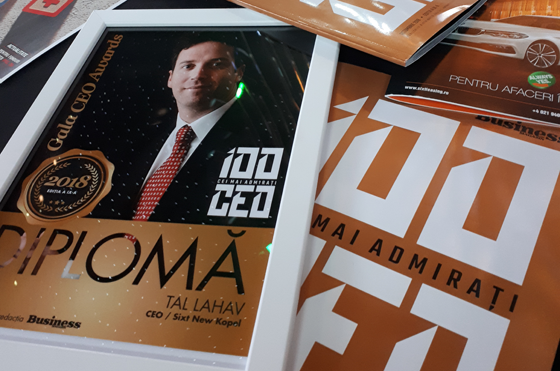 On the 25th October, within the Business Magazin CEO Gala Awards, held in Bucharest, Tal Lahav, CEO SIXT Group Romania, received one of the 10 distinctions offered to the most appreciated managers from Romania.