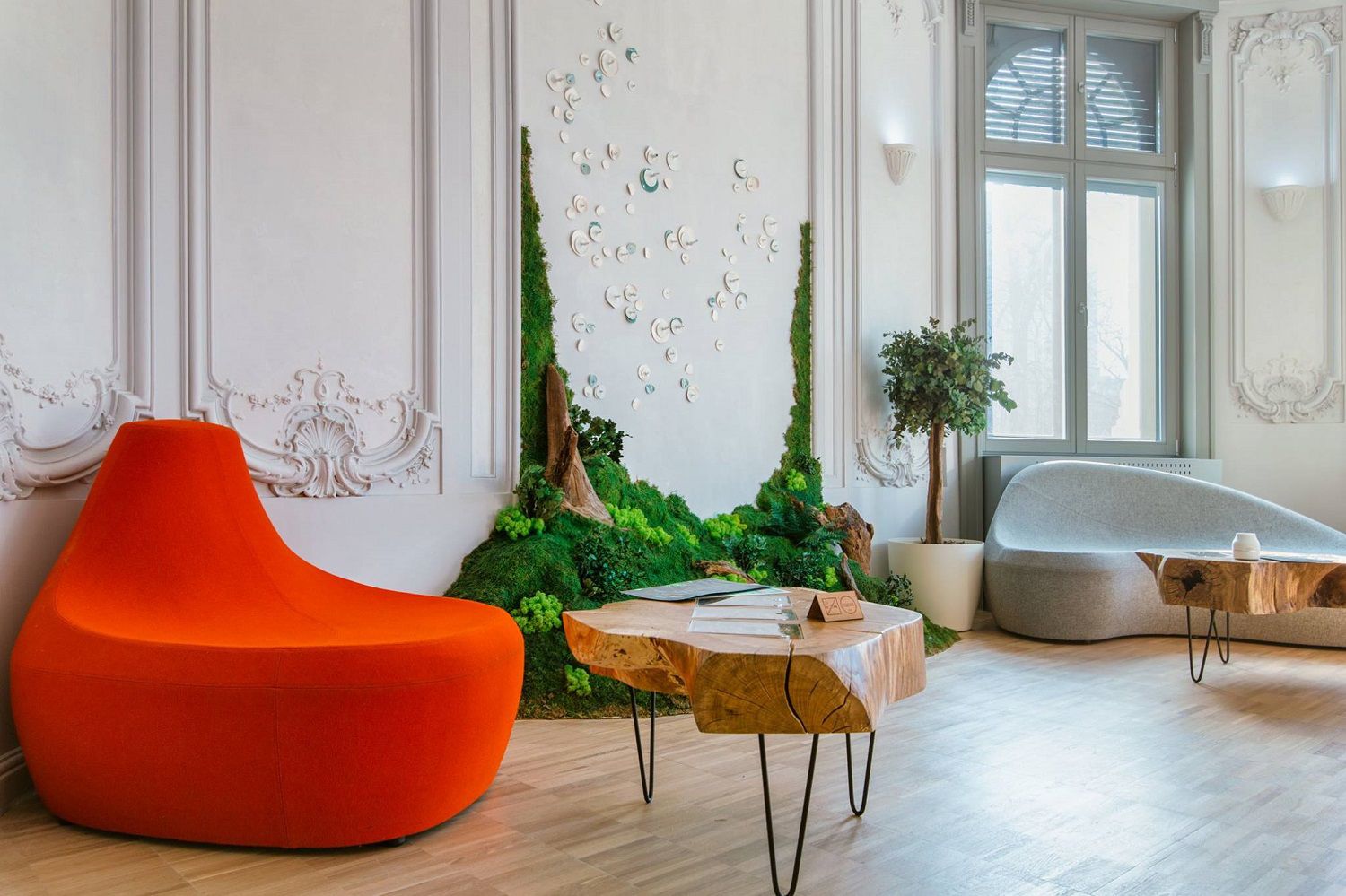 The second project with which inSIGN entered in this category is "Hotel Novotel - Modern interior design". The inSIGN team has created a welcoming, cozy & fresh fit with cream colored and beige tones, highlighted by strong color accents. The whole concept has been built around the curved lines and organic elements that work together in this unitary modern space. Patricia Urquiola (Rift Couch), Ferruccio Laviani (Suspended Supernova bodies), Anderssen & Voll (Ottoman KIPU Poufs) and Hee Welling (Auki Chairs) complete the interior design in an original way. Each decorative element participates in creating a lobby that invites the guests of this 4 star hotel to socializing.