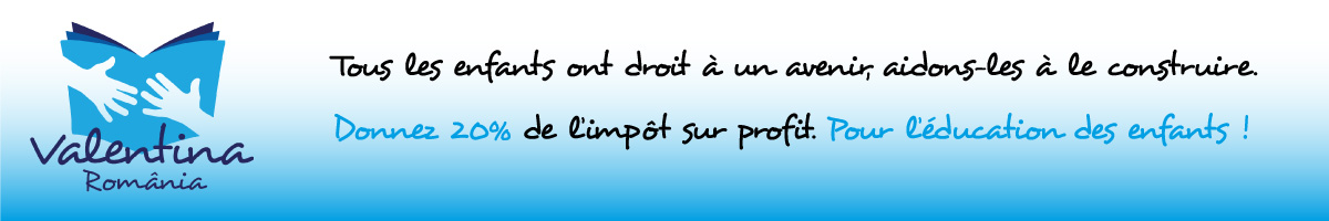 En cette période de fin d'année votre société peut, par un geste simple et sans aucun coût, apporter le sourire aux enfants défavorisés de Ferentari en versant à l'association Valentina 20% de l'impôt sur le profit dû à l'Etat.