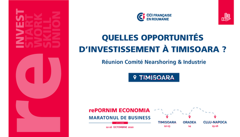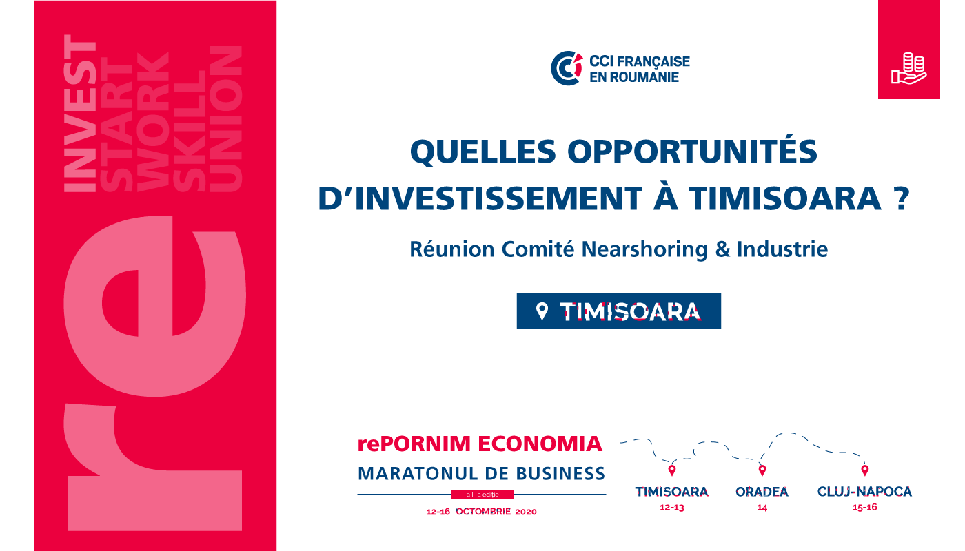 La CCIFER et le Centre d’Affaires Franco-Roumain de Timisoara ont le plaisir d’inviter les représentants des sociétés de l’industrie, à une réflexion organisée en présence des experts institutionnels et techniques, autour de la réalisation d’un projet de nearshoring à l’ouest de la Roumanie.