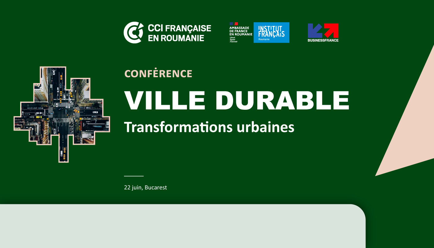 La CCIFER, l’Ambassade de France en Roumanie, Business France et l’Institut Français de Roumanie organisent le 22 juin 2023, la VII-ème édition de la Conférence « Ville durable ».