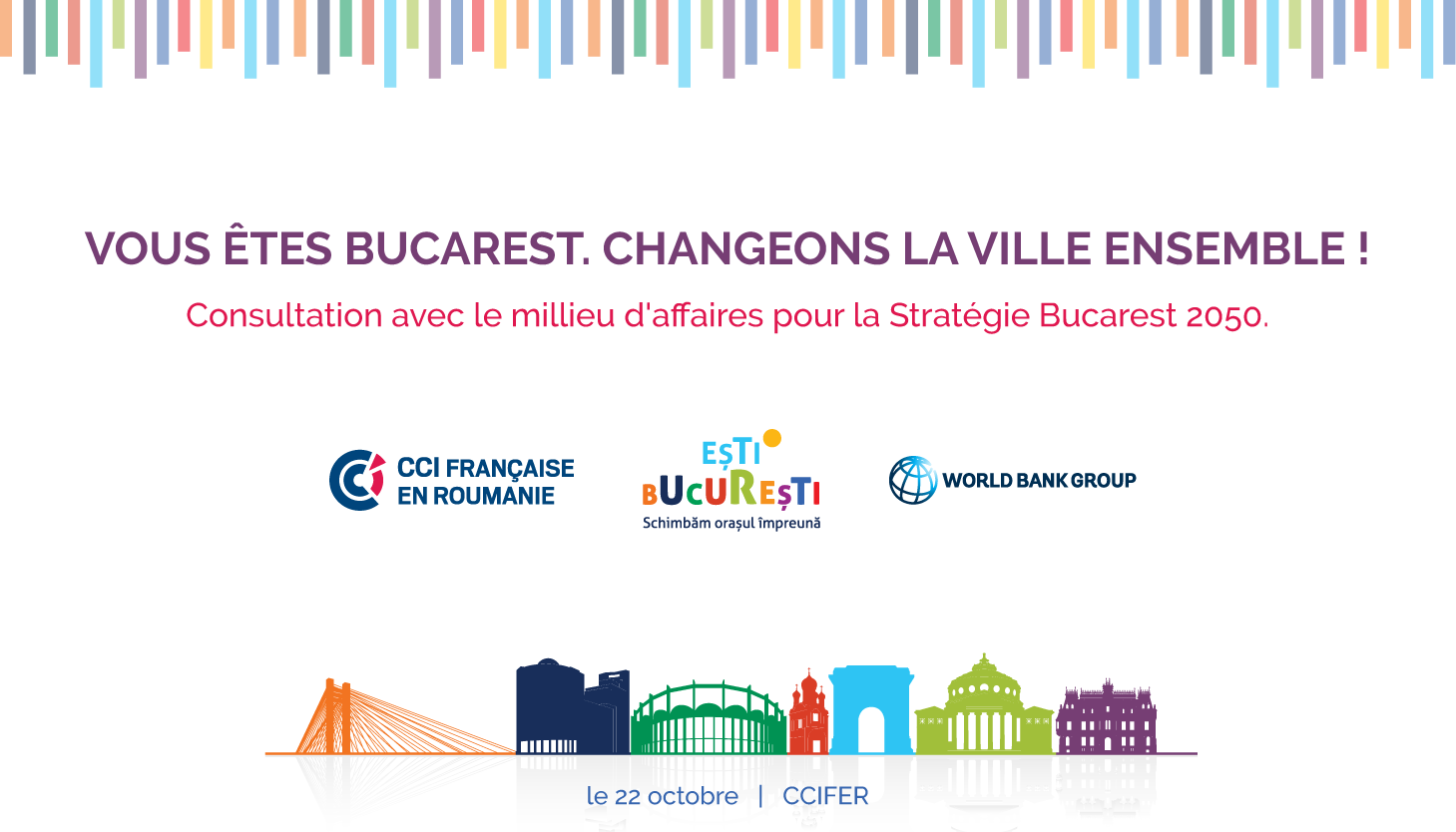 If that is the case for you and your company, we are pleased to invite you on the 22nd of October, at CCIFER’s premises starting at 9 a.m. to register your proposals to amend such issues. This event is part of an ample consultation organized by the World Bank in Romania with the business environment, the first one being in partnership with CCIFER, in order to design the Strategy of Bucharest 2050.