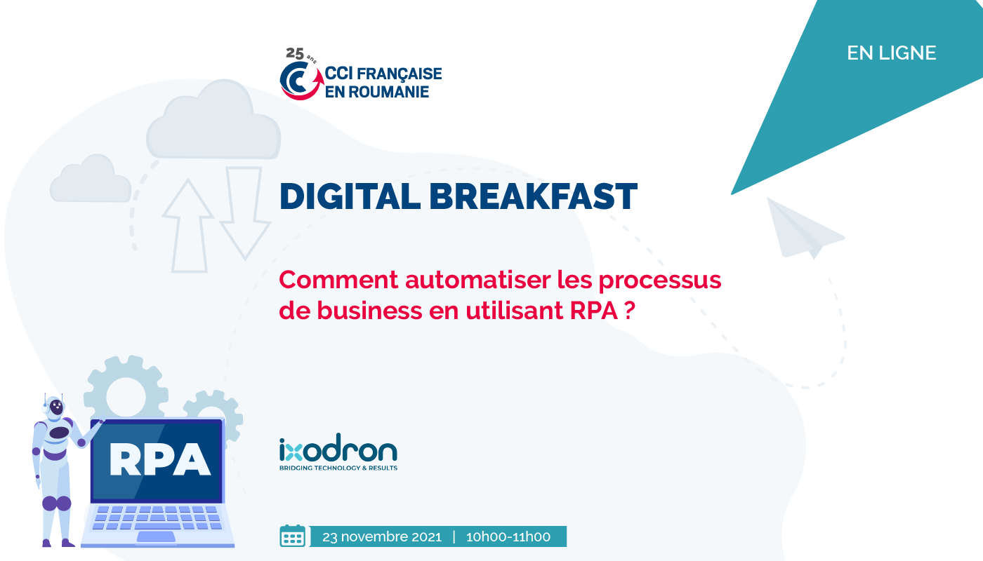 La CCIFER a le plaisir de vous inviter au Digital Breakfast, une réunion interactive où vous aurez l'occasion d'apprendre pourquoi la RPA (robotic process automation) est importante dans le processus de transformation digitale d'aujourd'hui et comment elle peut aider les entreprises à devenir plus efficaces,en réduisant les coûts et en augmentant la satisfaction des employés par rapport à leur travail.