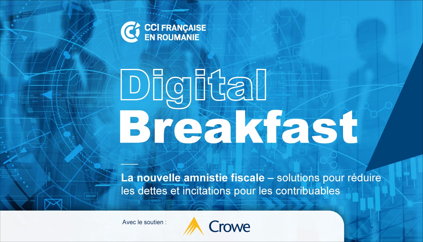 La CCIFER, en partenariat avec Crowe Roumanie, ont le plaisir de vous inviter en ligne le 3 octobre, entre 10h00 -11h00, à une nouvelle édition du Digital Breakfast.