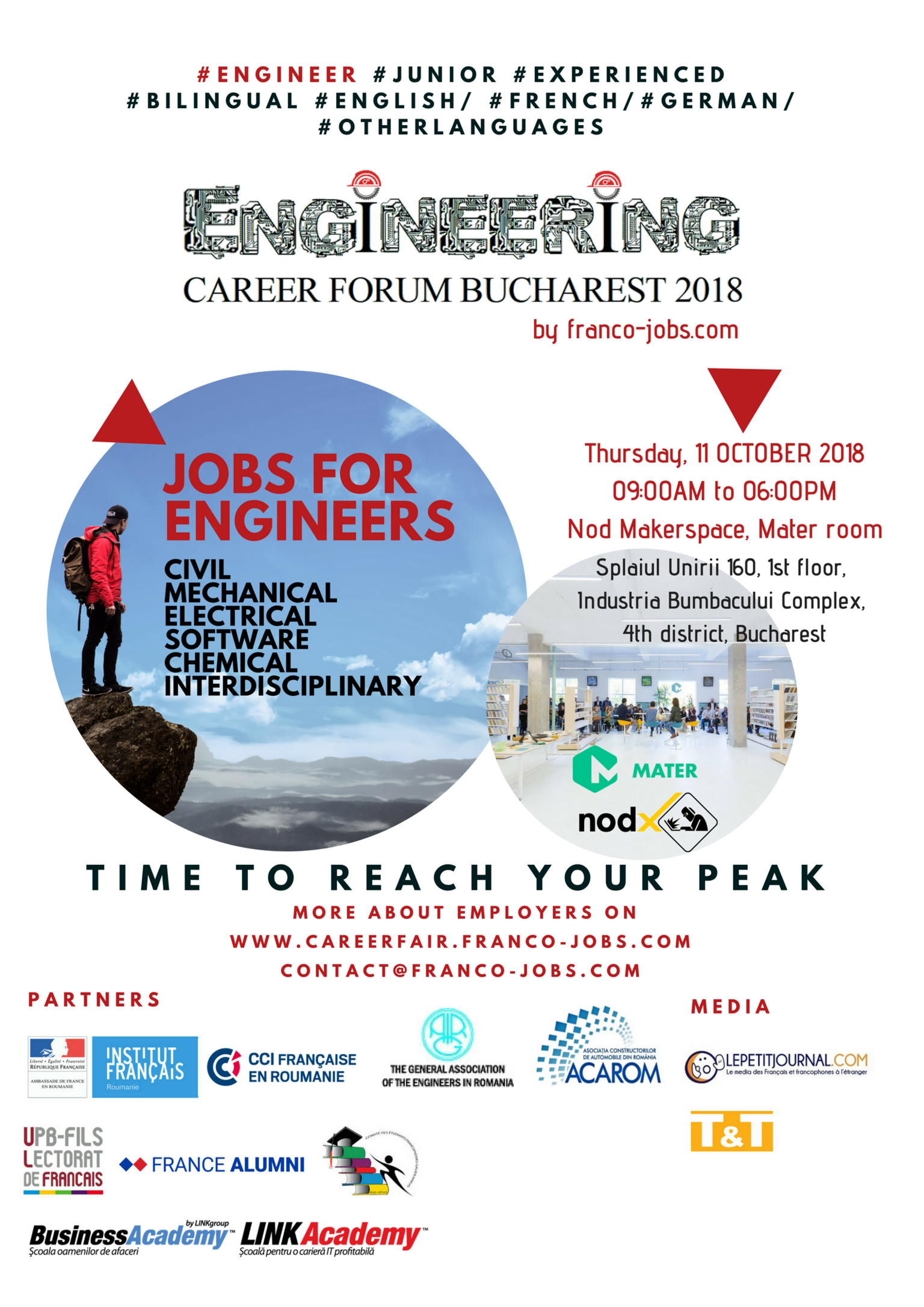 Pour plus de renseignements sur cet événement, veuillez communiquer avec : Cristina BRIZIOU, manager de projet, 004(0) 742. 188. 912, contact@franco-jobs.com