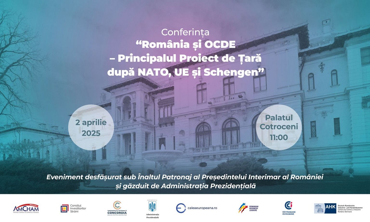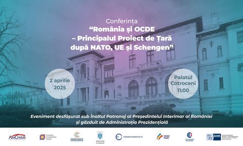 La CCIFER, Confederația Patronală Concordia, Consiliul Investitorilor Străini, Romanian Business Leaders, AmCham România et AHK România en partenariat avec Calea Europeana, organisent, le 2 avril, entre 10h30-15h00, la Conférence «La Roumanie et l'OCDE – Le principal projet d'Etat après l'OTAN, l'UE et Schengen ».