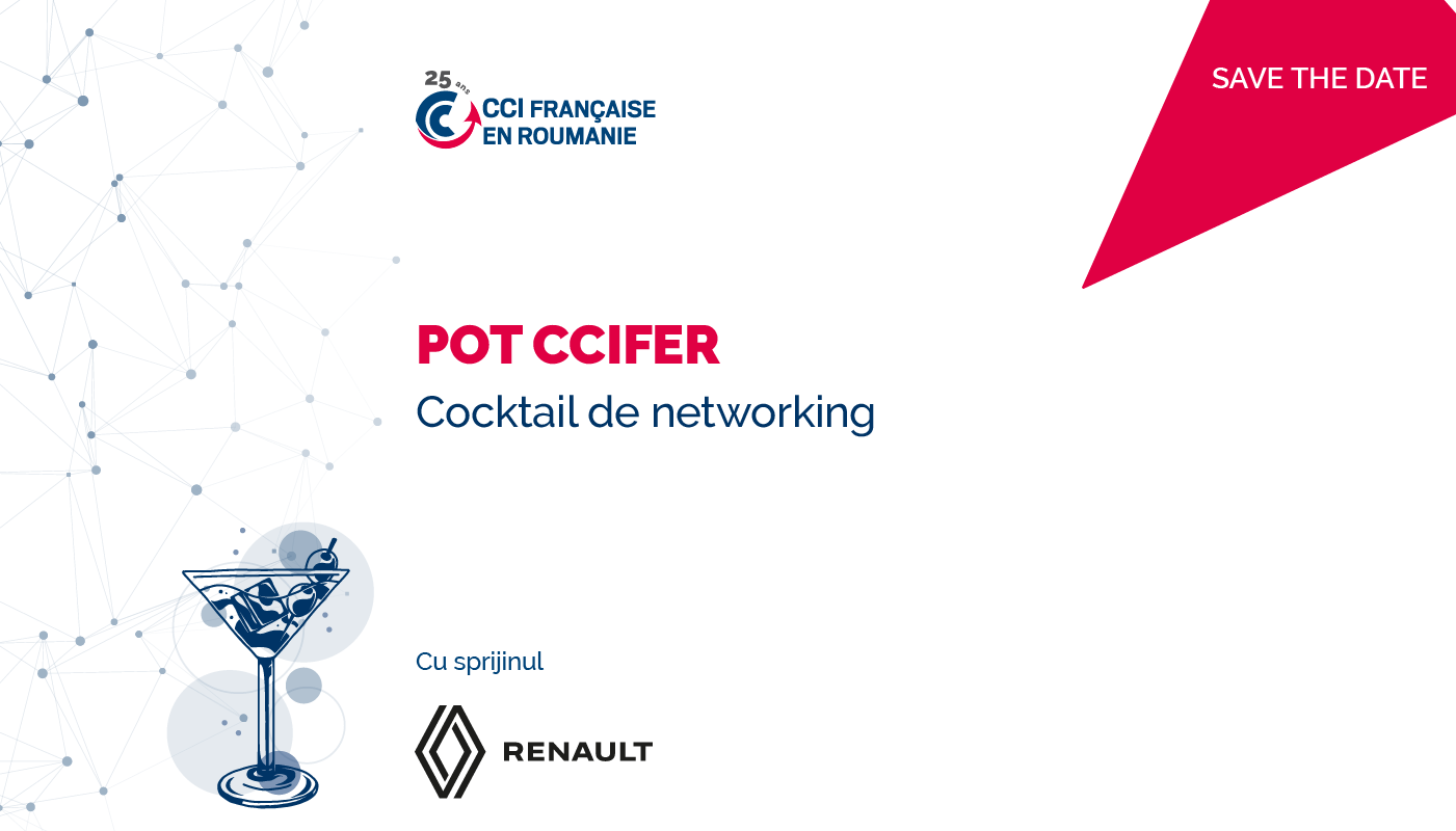 La CCIFER en partenariat avec le Groupe Renault ont le plaisir de vous inviter à un Cocktail de networking organisé en présence de la communauté d’affaires franco-roumaine.