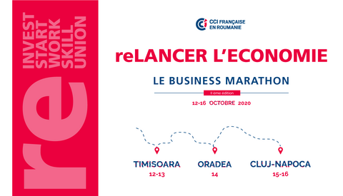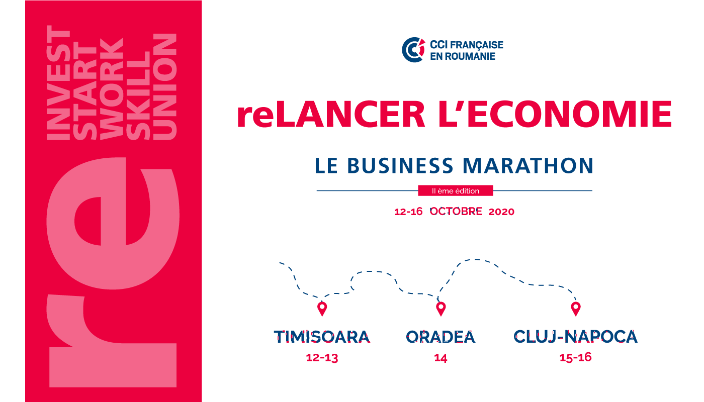 La CCIFER et ses partenaires institutionnels et stratégiques, vous invitent au Marathon de Business « reLANCER L’ECONOMIE », qui sera organisé à Timisoara (12-13 octobre), à Oradea (14 octobre) et à Cluj-Napoca (15-16 octobre).