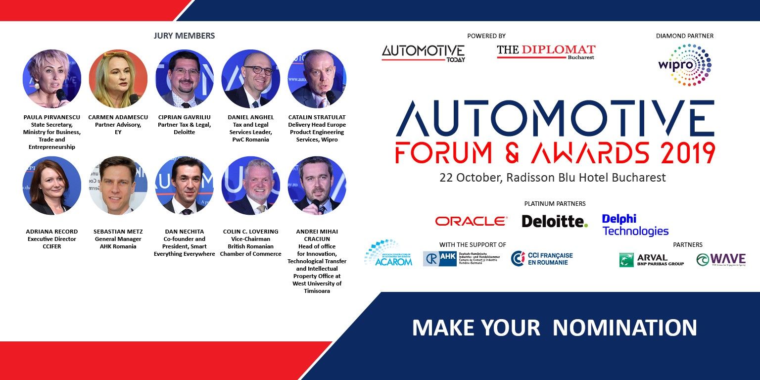Automotive Today powered by The Diplomat – Bucharest organizes the Automotive Industry Forum & Awards for Excellence Gala - 2nd Edition, on 22nd of October at Radisson Blu Hotel in Bucharest, starting15:00.