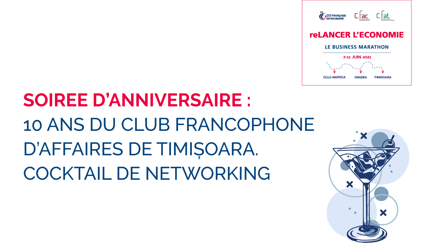 Evénement de networking d’exception pour célébrer les 10 ans du Club Francophone d'Affaires de Timisoara, organisé en présence des représentants de l’Ambassade de France, des officiels roumains, des membres de la communauté d’affaires franco-roumaine de Timisoara et de la région.