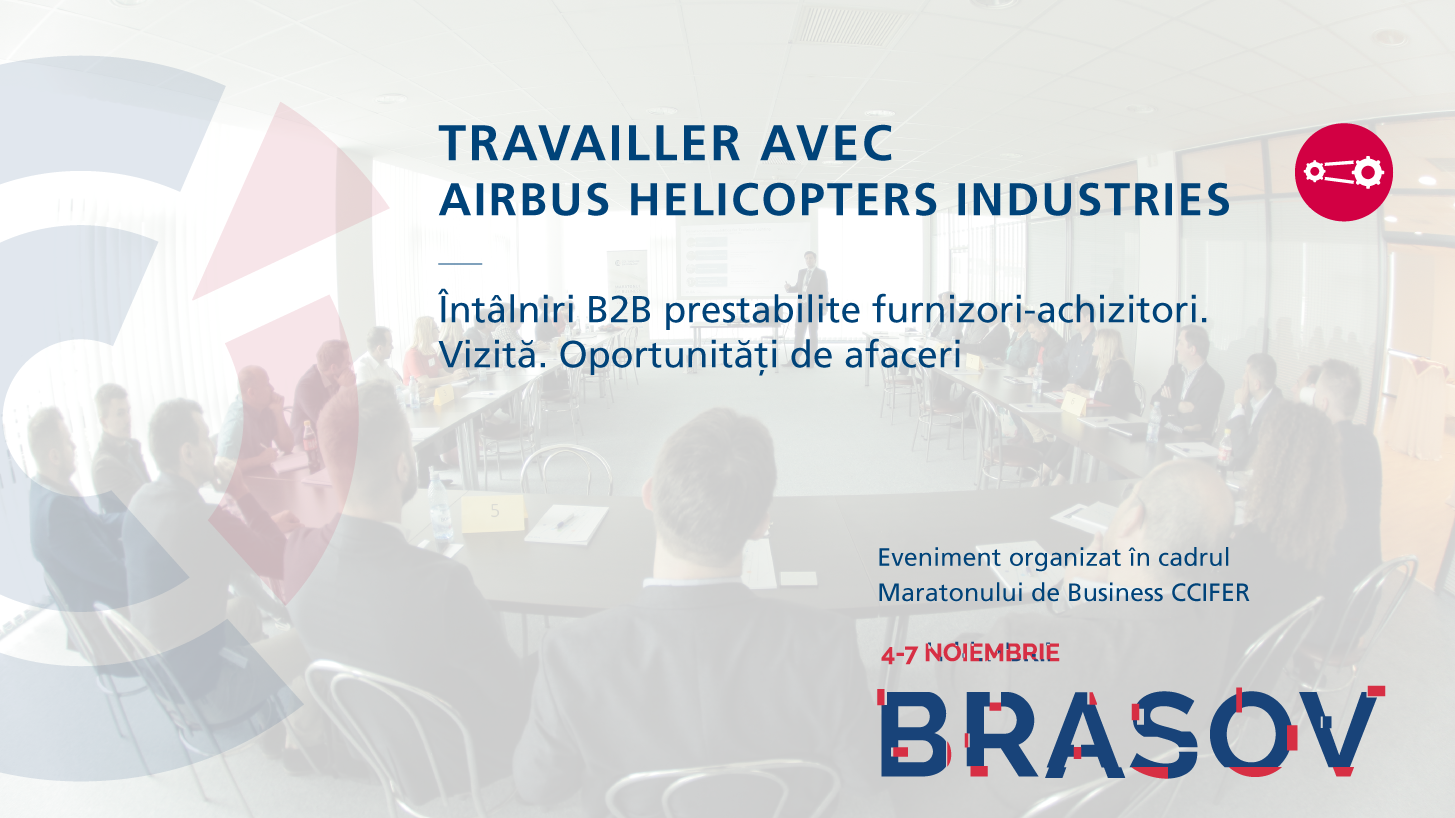 La CCIFER, l'Agence Consulaire de France à Brasov et l'Alliance Française de Brasov ont le plaisir de vous inviter à un événement organisé chez Airbus Helicopters Romania.
