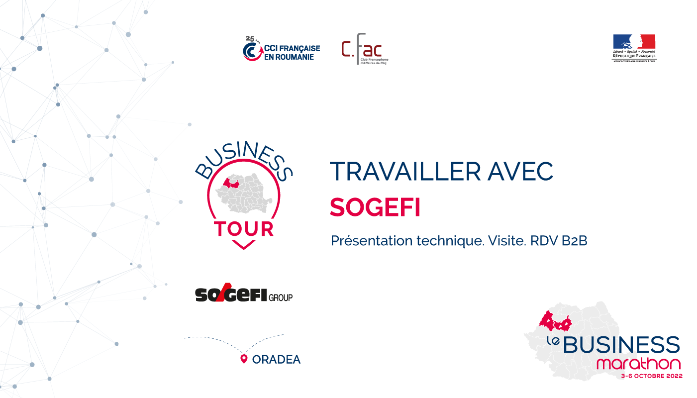 La taxe de participation à tous les événements « Business Tour – Travailler avec » qui auront lieu entre le 3-6 octobre 2022, à Oradea, Cluj-Napoca et Turda est de 300 EUR + TVA/personne.