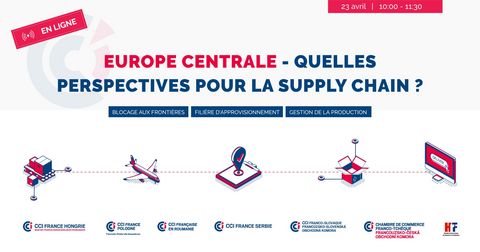 Les Chambres Françaises de Commerce et d'Industrie en Croatie, Hongrie, Pologne, Roumanie, Serbie, Slovaquie et Tchéquie vous invitent au webinaire "Europe centrale - quelles perspectives pour la supply chain", qui vous permettra d'avoir une visibilité sur les blocages aux frontières mais également de confronter les témoignages d'un panel d'entreprises sur les perspectives de la supply chain – directement du terrain, avec le support de nos conférenciers institutionnels.