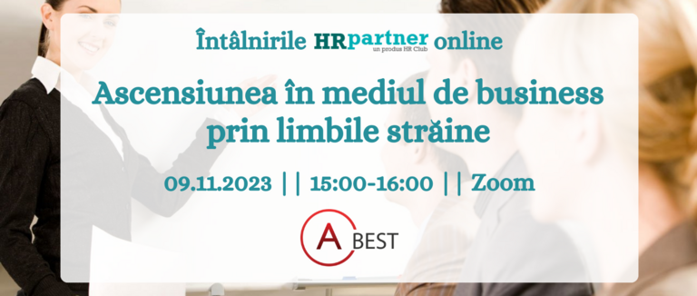 Despre “Ascensiunea în mediul de business prin limbile străine”, cu Aura Icodin, CEO & Fondator A_BEST, în cadrul unui webinar HR Club