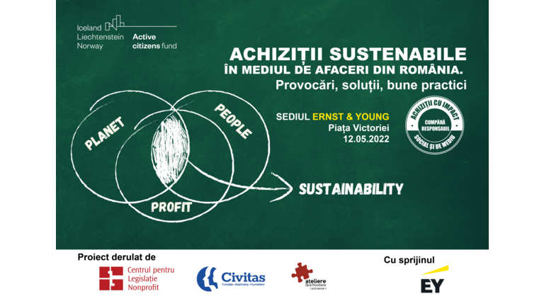 SAVE THE DATE: 12 MAI 2022: Asociația Ateliere Fără Frontiere organizează conferința „Achiziții sustenabile în mediul de afaceri din România. Provocări, soluții și bune practici”