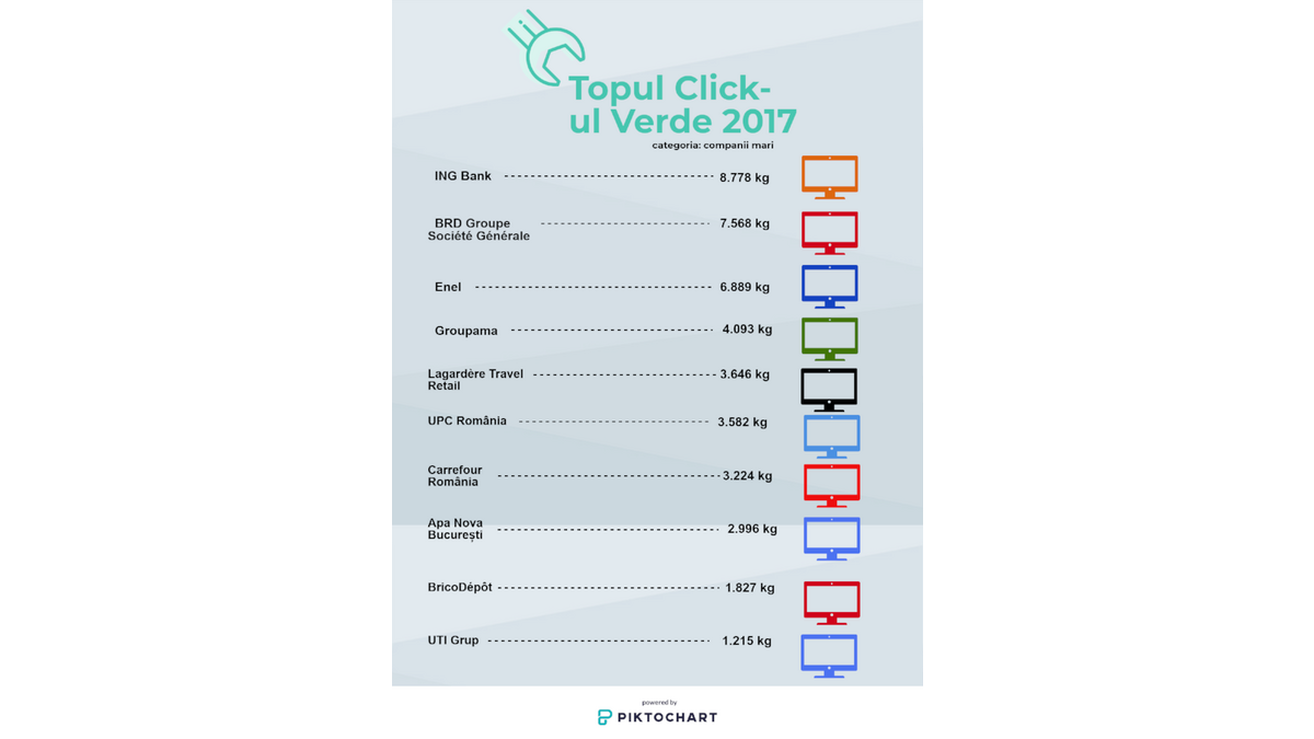 Clasamentul premiază cele mai responsabile companii din din punctul de vedere al managementului de Deșeuri de Echipamente Electrice și Electronice (DEEE). Acestea și-au respectat angajamentul față de mediul înconjurător și în 2017 au predat Asociației Ateliere Fără Frontiere cea mai mare cantitate deechipamente IT uzate (AFF este operator autorizat de colectare de deșeuri de echipamente electrice și electronice din 2009).