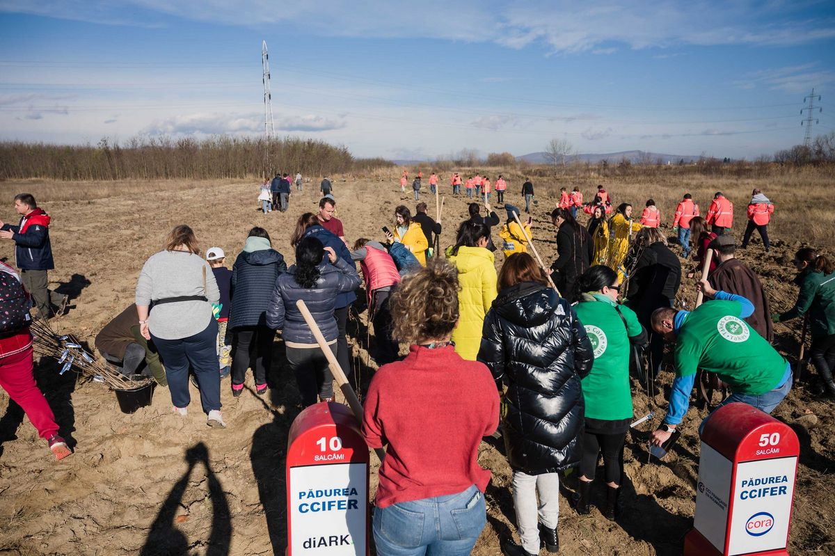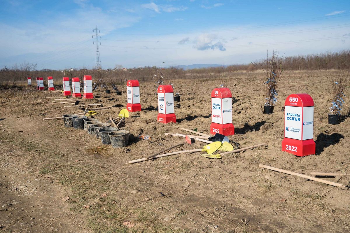 1.500 de arbori de salcâm plantați cu ajutorul a peste 200 de voluntari, pentru a compensa 34.100 kg de emisii de CO2