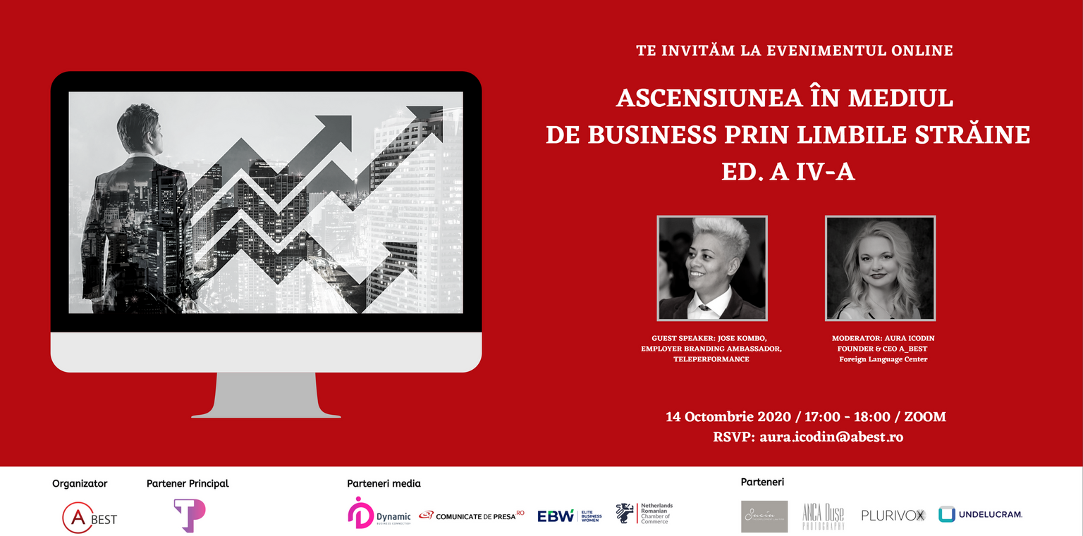 A_BEST (https://www.abest.ro/), unul dintre cele mai mari centre independente de învățare a limbilor străine din România, organizează pe 14 octombrie 2020, de la ora 17.00, conferința „Ascensiunea în mediul de business prin limbile străine”, ed. a IV-a, în colaborare cu Teleperformance România. Cu această ocazie, Jose Kombo, Employer Branding Ambassador Teleperformance România, va susține o dezbatere interactivă, în special despre impactul și importanța limbilor străine în comunicare și CEX (Customer Experience).