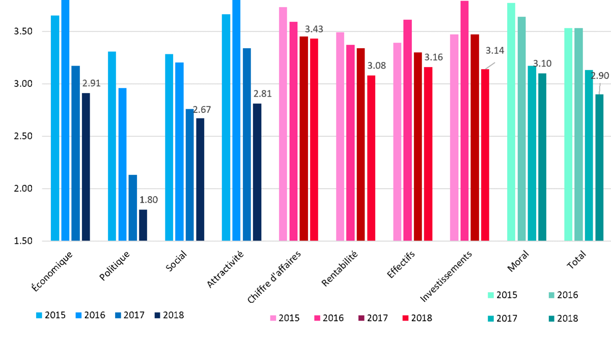 Barometrul general, agregând toți indicatorii, este de 2,9, în scădere cu 0,23 puncte față de 2017 și de 0,63 puncte față de 2016.