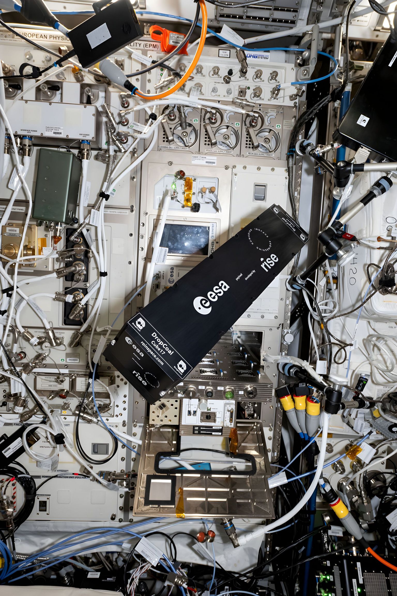 Lansat pe 5 noiembrie 2024, DropCoal a ajuns cu succes pe ISS, la 400 de kilometri deasupra Pământului. Experimentul studiază amestecarea a două picături de lichid în gravitație zero, o cercetare care poate ajuta la îmbunătățirea modulului de administrare a medicamentelor pentru astronauți și la dezvoltarea unor soluții mai eficiente pentru alimentarea cu combustibil a navelor spațiale. RISE controlează dispozitivul de la sol printr-o conexiune securizată cu Stația Spațială. Dispozitivul este proiectat să înregistreze fiecare detaliu al interacțiunilor dintre picături cu o cameră ultrarapidă.