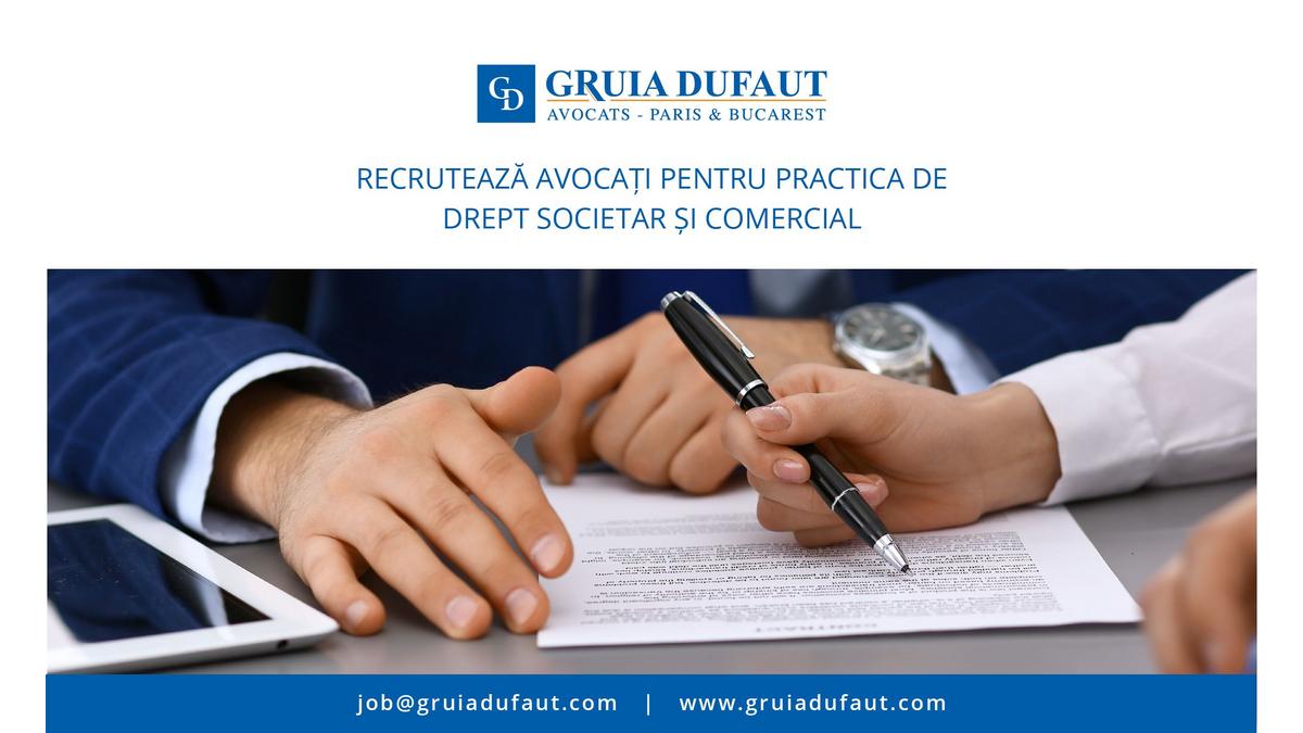 Cabinetul de avocat GRUIA DUFAUT recrutează avocați