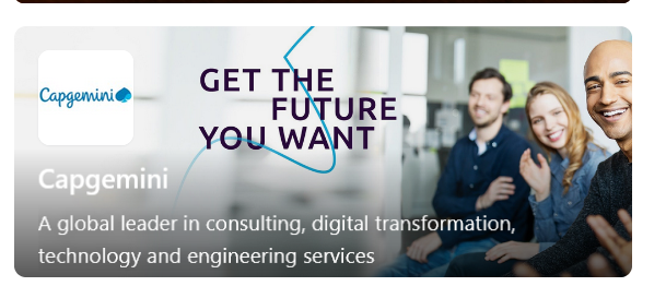 Capgemini este un lider global în încheierea parteneriatelor cu companii pentru a-și transforma și gestiona afacerea prin valorificarea puterii tehnologiei. Grupul este ghidat zilnic de scopul său de a dezlănțui energia umană prin tehnologie pentru un viitor incluziv și durabil. Capgemini este o organizație responsabilă și diversă, cu 290.000 membri de echipă în aproape 50 de țări. Cu o moștenire puternică de 50 de ani și o expertiză profundă în industrie, Capgemini a obținut încrederea clienților săi pentru a răspunde întregii arii de nevoi ale afacerii lor, de la strategie și design până la operațiuni, alimentate de universul inovator și în evoluție rapidă a cloud-ului, date, AI, conectivitate, software, inginerie digitală și platforme. Grupul a raportat în 2020 venituri globale de 16 miliarde EUR.