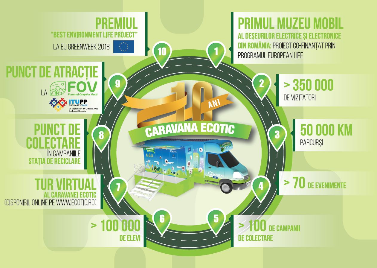 Lansat în 2014 ca un proiect cu co-finanțare europeană LIFE, Caravana ECOTIC a devenit un simbol și un mijloc de conștientizare și de informare în ceea ce privește colectarea separată si reciclarea deșeurilor electrice.
