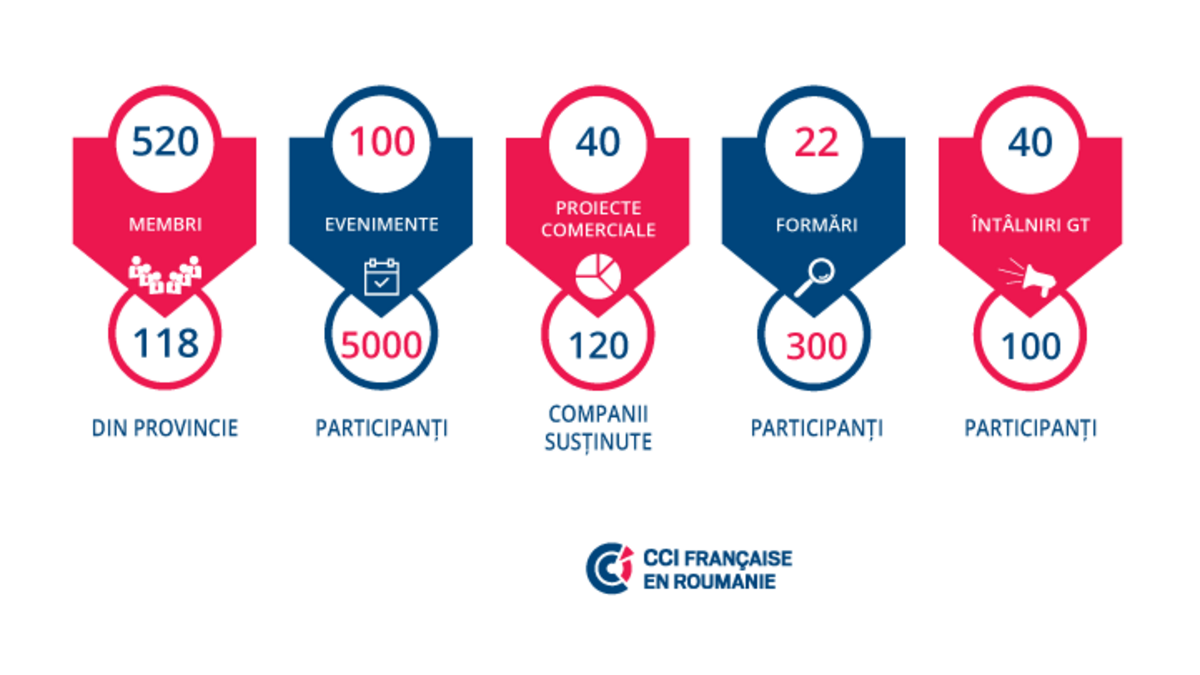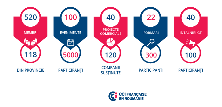 In serviciul comunitatii sale, CCIFER are trei misiuni: sa creeze noi oportunitati, sa sprijine dezvoltarea membrilor prin serviciile oferite si sa reprezinte vocea societatilor in dialogul public. Au rezultat 100 de evenimente organizate in Bucuresti si in provincie, 40 de proiecte comerciale in Romania sau in Franta, 300 de participanti la cursurile de formare oferite, si peste 100 de participanti implicati in cele 10 grupuri de lucru active din cadrul CCIFER.