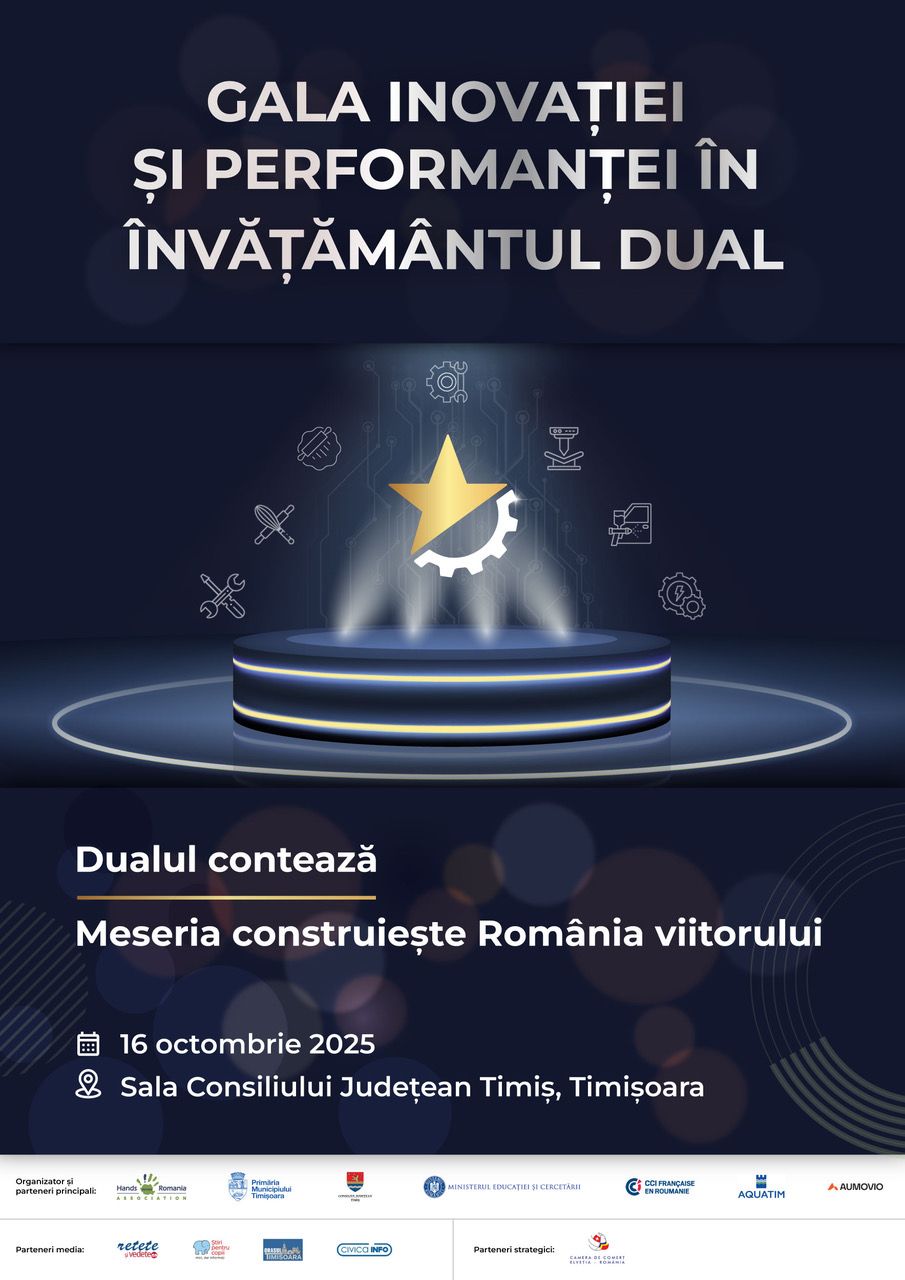 CCIFER este partener al Galei Inovației și Performanței în Învățământul Dual 2025 (16 octombrie, Consiliul Județean Timiș), un eveniment național dedicat promovării excelenței, colaborării și creativității în învățământul profesional dual din România.