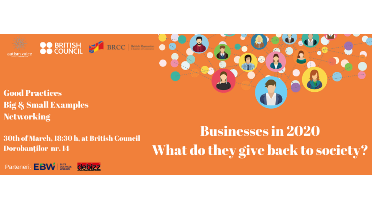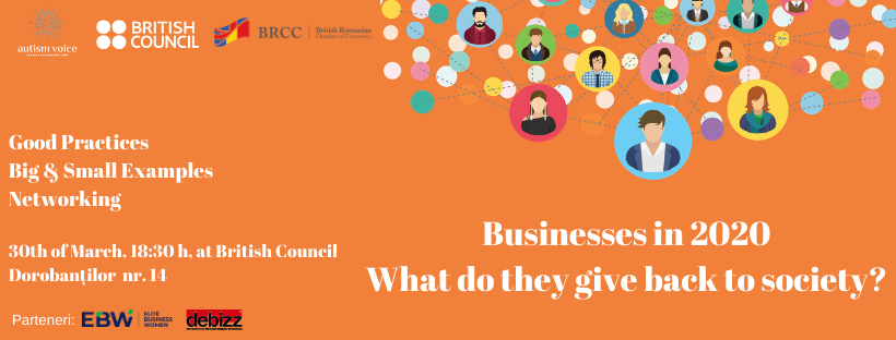 Pe 30 martie, la British Council, în contextul „Zilei Mondiale de Conștientizare a Autismului”, Autism Voice în parteneriat cu British Council România și Camera de Comerț Româno-Britanica (BRCC), vă invită să participați la un alt tip de eveniment de învățare și networking cu companii naționale și internaționale.